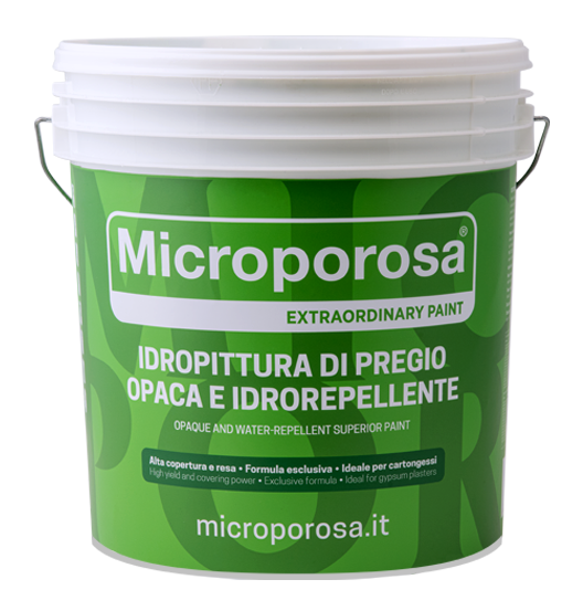Idropittura di pregio opaca a struttura MICROPOROSA®, per interno a base di copolimeri vinilici pregiati. MICROPOROSA® è caratterizzata da un’ottima copertura, una buona opacità ed un’eccellente proprietà di permeabilità al vapore acqueo. Adatto per Intonaci civili, cartongesso, pareti rasate a stucco e supporti minerali in genere. Consente un’ottima ripresa sulle mani intermedie in quanto maschera perfettamente le imperfezioni dell’intonaco evitando i fenomeni di lumacatura; ideale come pittura traspirante per interno. La sua permeabilità al vapore acqueo e alla CO2 permettono la traspirazione del supporto minerale evitando così la concentrazione di umidità nei muri che dà origine alla formazione di muffe. È particolarmente indicata per ambienti umidi quali cucine, bagni, ecc…